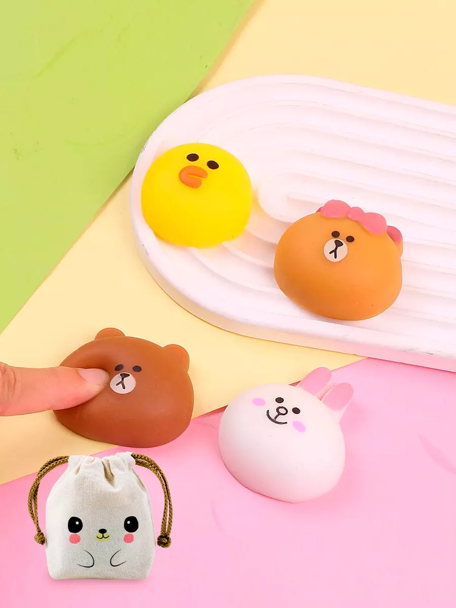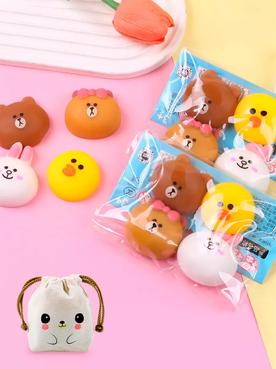 4 SQUISHIES MOCHI ANIMALES AMIGOS SQUEEZE ANTI STRESS TOYS C/ BOLSITA KAWAII