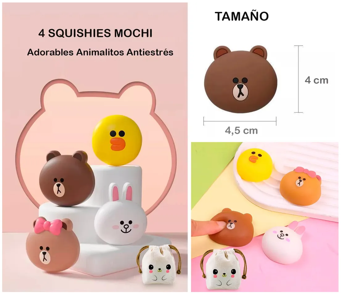 Cuatro Squishy Mochi Animalitos