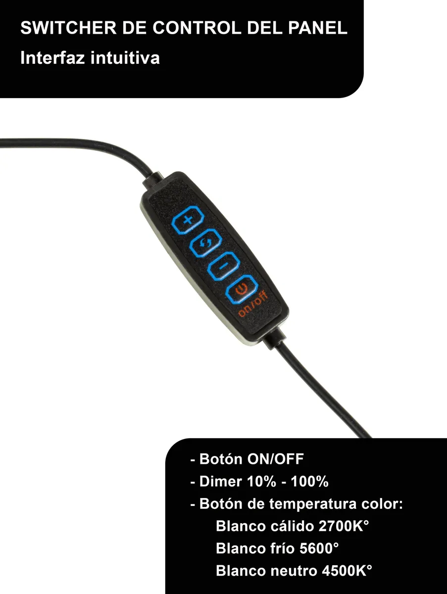 • Temperatura del color: Variable 2700K°/ 4500K° / 6500K°