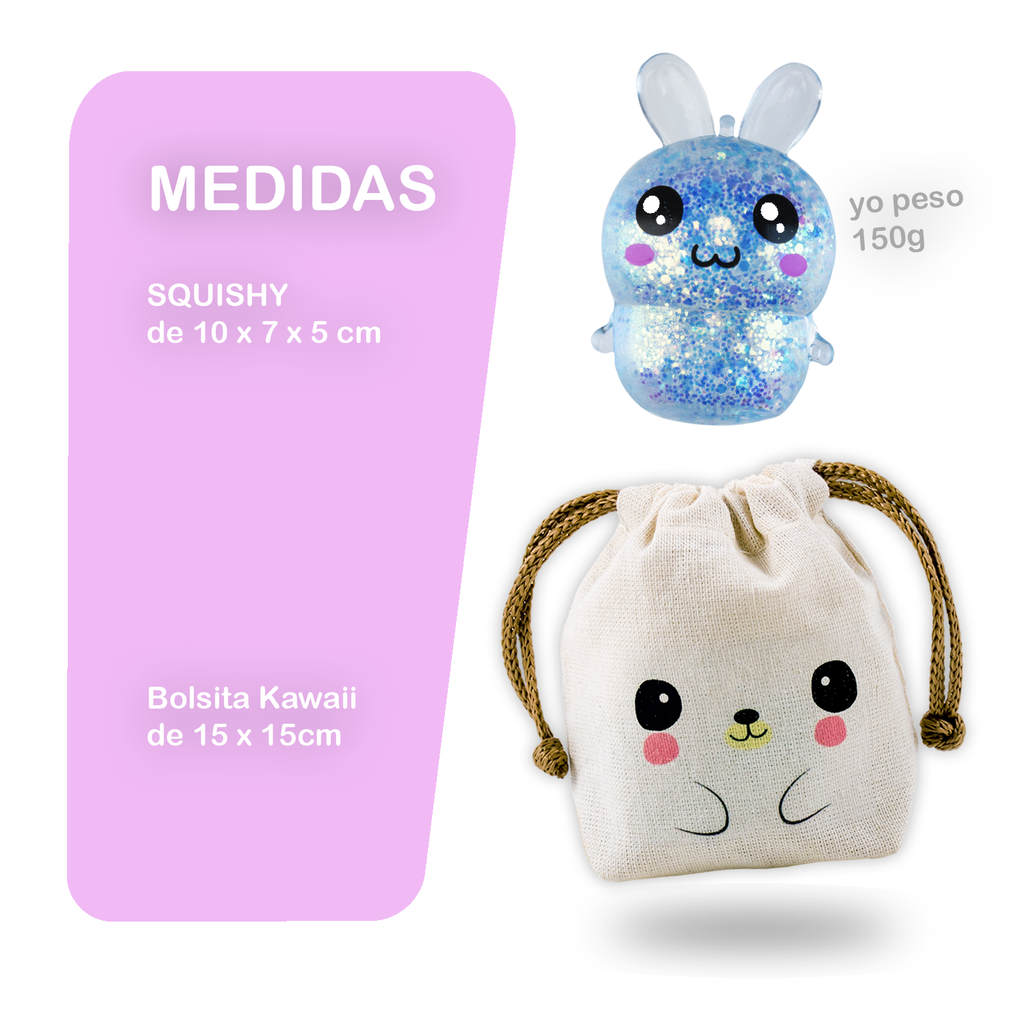 La publicación incluye un Squishy Conejo Galáctico en su Bolsita Kawaii