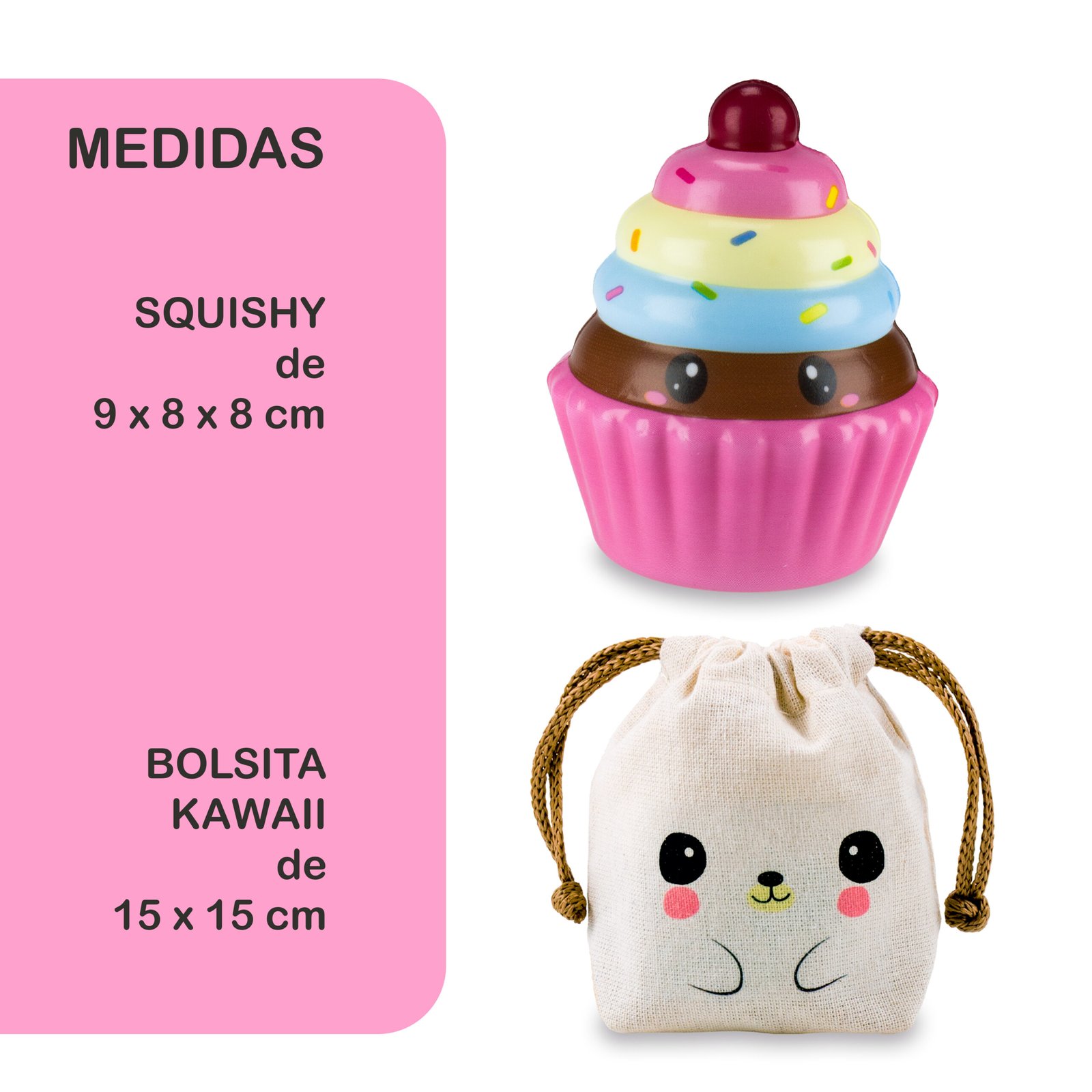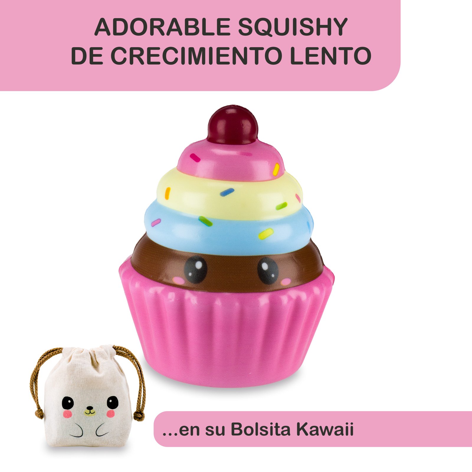 Squishy De Crecimiento Lento Comiditas – MUFFIN ROSA + Bolsita Kawaii