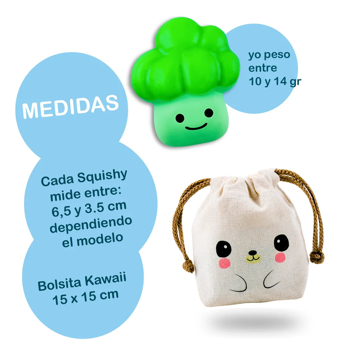 PESO: Cada Squishy pesa entre 10 y 15 gr dependiendo el modelo