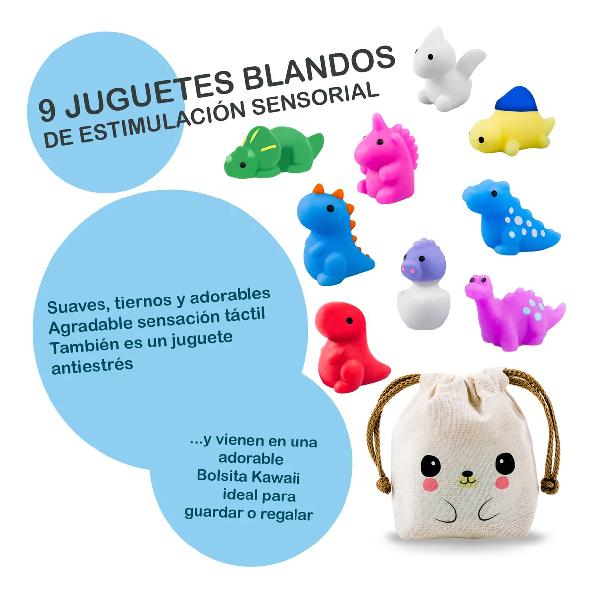 Excelente Set de 9 SQUISHY MOCHI DINOS marca DADA TOYS de calidad PREMIUM.